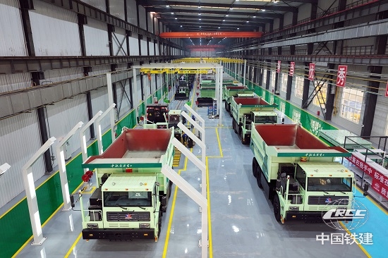 中鐵長安重工公司自主研制的電動寬體自卸車在礦山運行