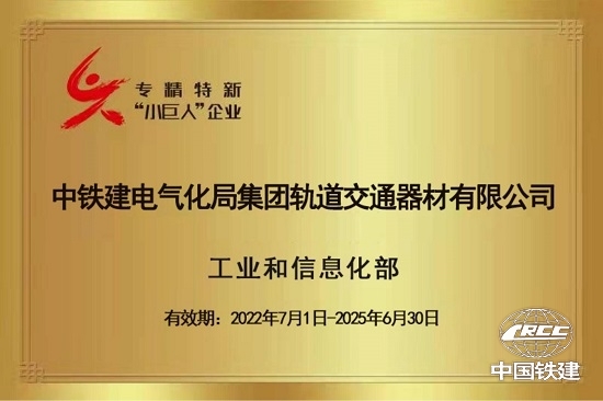 電氣化局軌道器材公司取得國家級“專精特新”小巨人認證